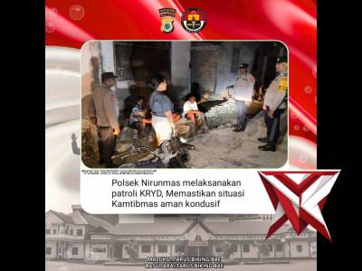 Polsek Nirunmas - PoliceTubeFeb 15, 2026 08:11 - Berita - 19 viewsMelaksanakan patroli KRYD memastikan situasi Kamtibmas aman kondusif