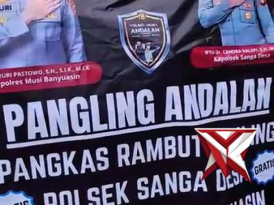 Program PANGLING ANDALAN (Pangkas Rambut Kliling) GRATIS Polsek Sanga Desa Polres Musi Banyuasin. -...Feb 23, 2026 07:32 - Berita - 10 viewsProgram PANGLING ANDALAN (Pangkas Rambut Kliling) GRATIS Polsek Sanga Desa Polres Musi Banyuasin. -