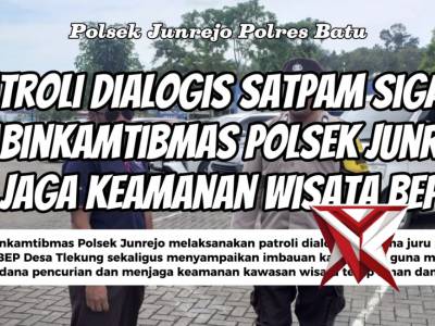 Patroli Dialogis Satpam Sigap, Bhabinkamtibmas Polsek Junrejo Jaga Keamanan Wisata BEPMar 09, 2026 20:43 - Berita - 2 viewsBhabinkamtibmas Polsek Junrejo melaksanakan patroli dialogis bersama juru parkir Wisata BEP Desa Tlekung sekaligus menyampaikan imbauan kamtibmas guna mencegah tindak pidana pencurian dan menjaga keamanan kawasan wisata tetap aman dan kondusif. -