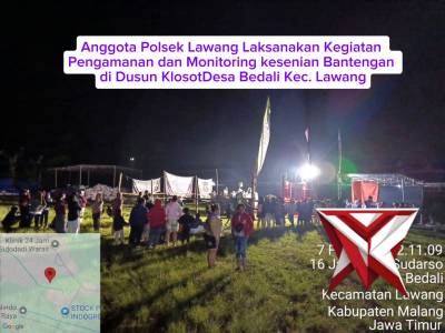 Kegiatan Pengamanan Dan Monitoring Kesenian Bantengan Di Dusun Klosot Desa Bedali Lawang Kab. Malang...Feb 09, 2026 08:13 - Berita - 26 viewsAnggota Polsek Lawang Laksanakan Kegiatan Pengamanan Dan Monitoring Kesenian Bantengan Di Dusun Klosot Desa Bedali Lawang Kab. Malang -