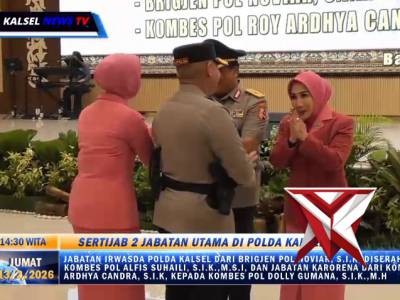 Serah Terima Jabatan (Sertijab) Dua Pejabat Utama Polda Kalsel - PoliceTubeFeb 17, 2026 06:58 - Berita - 41 viewsKepolisian Daerah Kalimantan Selatan (Polda Kalsel) resmi melaksanakan serah terima jabatan (sertijab) dua pejabat utama dalam upacara yang dipimpin langsung Kapolda Kalsel Irjen Pol Rosyanto Yudha Hermawan, S.I.K., S.H., M.H. di Auditorium Polda Kalsel,... -
