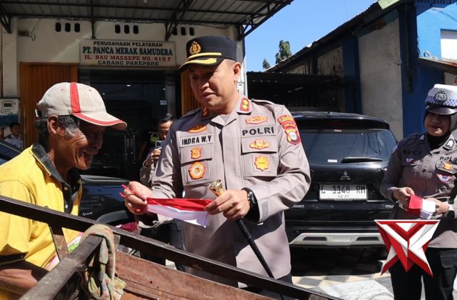 Kapolres Parepare, AKBP Indra Waspada Yuda, S.I.K.,M.H. Membagian bendera MerahDec 20, 2025 15:07 - Berita - 16 viewsKapolres Parepare, AKBP Indra Waspada Yuda, S.I.K.,M.H. menggelar kegiatan pembagian bendera Merah Putih yang melintas di Jalan Bau Massepe, Kelurahan Malusetasi, Kacamatan Ujung, Kota Parepare, Kamis (14/8/2025). “Mari kita sambut kemerdekaan Republik... -