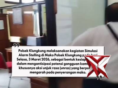 Polsek Klungkung Gelar Simulasi Alarm Steling Mako.Mar 03, 2026 13:18 - Berita - 6 viewsPOLSEK KLUNGKUNG GELAR SIMULASI ALARM STELLING, TINGKATKAN KESIAPSIAGAAN PERSONEL Polsek Klungkung melaksanakan kegiatan Simulasi Alarm Stelling di Mako Polsek Klungkung pada hari Selasa, 3 Maret 2026, sebagai bentuk kesiapsiagaan dalam mengantisipasi po... -