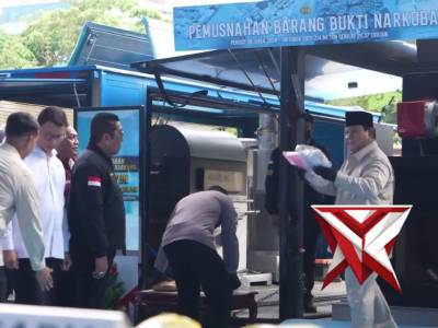 Presiden RI Prabowo Subianto Pimpin Pemusnahan 214,84 Ton NarkobaFeb 22, 2026 12:31 - Berita - 13 viewsPresiden RI Prabowo Subianto memimpin pemusnahan 214,84 ton narkoba hasil pengungkapan Polri, senilai Rp29,37 triliun. Kegiatan ini digelar di Lapangan Bhayangkara, Jakarta Selatan (29/10/2025), sebagai wujud nyata tindak lanjut Asta Cita Presiden dalam... -
