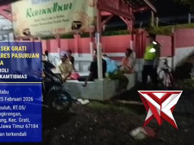 ANGGOTA POLSEK GRATI MELAKSANAKAN PATROLI DIALOGIS DENGAN WARGA DESA SUMBERAGUNG.Feb 27, 2026 01:28 - Berita - 8 viewsANGGOTA POLSEK GRATI POLRES PASURUAN KOTA MELAKSANAKAN PATROLI ANTISIPASI 3C SAMBIL DIALOGIS DENGAN WARGA DESA SUMBERAGUNG SITUASI AMAN TERKENDALI.