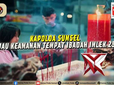Kapolda Sumsel Tinjau Keamanan Tempat Ibadah Imlek 2577 Kongzili di Palembang - PoliceTubeFeb 18, 2026 03:26 - Berita - 11 viewsKapolda Sumsel Tinjau Keamanan Tempat Ibadah Imlek 2577 Kongzili di Palembang Palembang — Dalam rangka memastikan perayaan Tahun Baru Imlek 2577 Kongzili Tahun 2026 berlangsung aman dan kondusif, Kapolda Sumsel Irjen Pol. Sandhy Nugroho, S.I.K., S.H., M.... -
