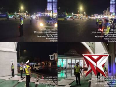 Satlantas Polresta Bengkulu Gelar Patroli Blue Light, Amankan Arus Lalin Jamaah Isya dan TarawihFeb 22, 2026 05:39 - Berita - 9 viewsSatuan Lalu Lintas Polresta Bengkulu melaksanakan kegiatan Patroli Blue Light di wilayah Kota Bengkulu mulai pukul 19.30 WIB hingga selesai dengan menyasar Masjid At Taqwa dan Masjid Jamik, Sabtu (21/2/2026). Kegiatan ini difokuskan pada pemantauan arus... -