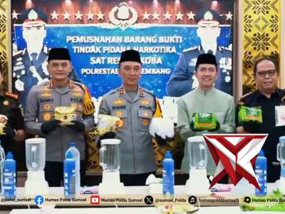 Kapolda Sumsel Pimpin Pemusnahan Barang Bukti, Tegaskan Komitmen Berantas Penyalahgunaan dan Peredar...Feb 25, 2026 00:11 - Berita - 8 viewsKapolda Sumsel Pimpin Pemusnahan Barang Bukti, Tegaskan Komitmen Berantas Penyalahgunaan dan Peredaran Gelap Narkotika Palembang - Komitmen pemberantasan peredaran dan penyalahgunaan narkotika di Sumatera Selatan terus digencarkan secara masif dan berkel... -