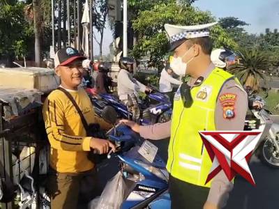 Personil lantas Polsek Krian memberikan teguran lisan kepada pengendara yang melakukan pelanggaran -...Feb 04, 2026 14:08 - Berita - 30 viewsPolsek Krian Aipda Dadang K. Petugas memberikan teguran lisan kepada pengendara yang melakukan pelanggaran ringan serta menyampaikan pesan-pesan keselamatan berlalu lintas guna menumbuhkan kesadaran dan kedisiplinan masyarakat di jalan raya. -