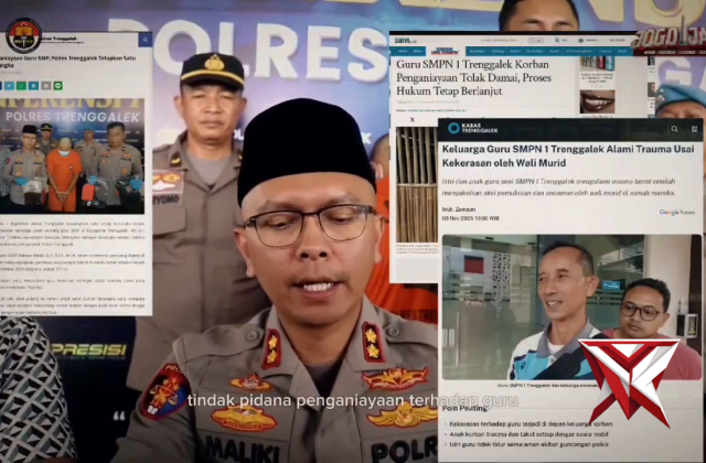 Sempat Heboh di Media Sosial, Polres Trenggalek Tetapkan Tersangka Penganiayaan GuruNov 11, 2025 08:25 - Berita - 35 viewsSempat Heboh di Media Sosial, Polres Trenggalek Tetapkan Tersangka Penganiayaan Guru Kepolisian Resor Trenggalek menetapkan satu orang tersangka dalam peristiwa penganiayaan terhadap salah seorang guru SMP di Kabupaten Trenggalek. AK, (27 tahun) warga de...