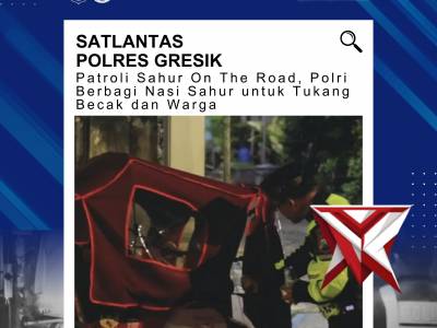 Satlantas Polres Gresik Gelar Sahur On The Road, Berbagi dan Jaga KamtibmasMar 01, 2026 15:17 - Berita - 7 viewsSatlantas Polres Gresik melaksanakan patroli Sahur On The Road pada Jumat, 27 Februari 2026 waktu subuh di wilayah Kota Gresik dengan membagikan nasi sahur kepada tukang becak serta masyarakat yang ditemui sebagai bentuk kepedulian di bulan Ramadan. Dalam... -