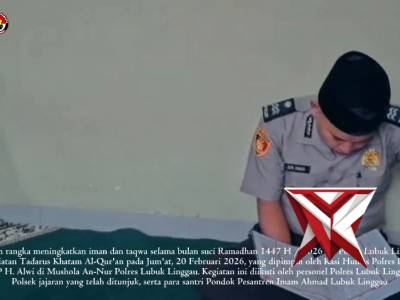 Polres lubuklinggauFeb 21, 2026 18:59 - Berita - 7 viewsLUBUK LINGGAU – Dalam rangka meningkatkan iman dan taqwa selama bulan suci Ramadhan 1447 H / 2026 M, Polres Lubuk Linggau menggelar kegiatan Tadarus Khatam Al-Qur'an pada Jum'at, 20 Februari 2026, yang dipimpin oleh Kasi Humas Polres Lubuk Linggau AKP H.... -