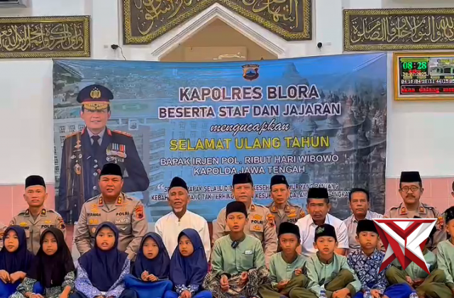 Polres Blora Gelar Doa Bersama dan Santunan Anak Yatim Rayakan Ulang Tahun Kapolda JatengNov 16, 2025 08:15 - Berita - 27 viewsBLORA – Kepolisian Resor Blora menggelar doa bersama dan santunan anak yatim di Masjid Al-Istiqomah Polres Blora pada Rabu (30/7/2025). Kegiatan ini dilaksanakan dalam rangka memperingati ulang tahun Kapolda Jawa Tengah Irjen Pol. Ribut Hari Wibowo S.H.,... -