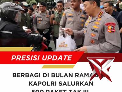 Jelang berbuka puasa, Kapolri beserta Pejabat Utama membagikan 500 paket takjil - PoliceTubeFeb 26, 2026 14:43 - Berita - 7 viewsJelang berbuka puasa, Kapolri Jenderal Polisi Drs. Listyo Sigit Prabowo, M.Si., beserta Pejabat Utama Mabes Polri membagikan 500 paket takjil kepada masyarakat dan para pengendara yang melintas di jalan utama Mabes Polri, Jakarta Selatan. Kegiatan ini men... -