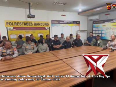 Syukuran Humas Polri ke 74Mar 02, 2026 00:44 - Berita - 8 viewsKapolrestabes Bandung Kombes Pol Dr. Budi Sartono, S.I.K., M.Si., M.Han melalui Kasi Humas Polrestabes Bandung AKP Nurindah Murdiani, S.H. melaksanakan kegiatan syukuran dalam rangka Hari Jadi ke-74 Humas Polri, bertempat di Aula Bag Ops Polrestabes Bandu...